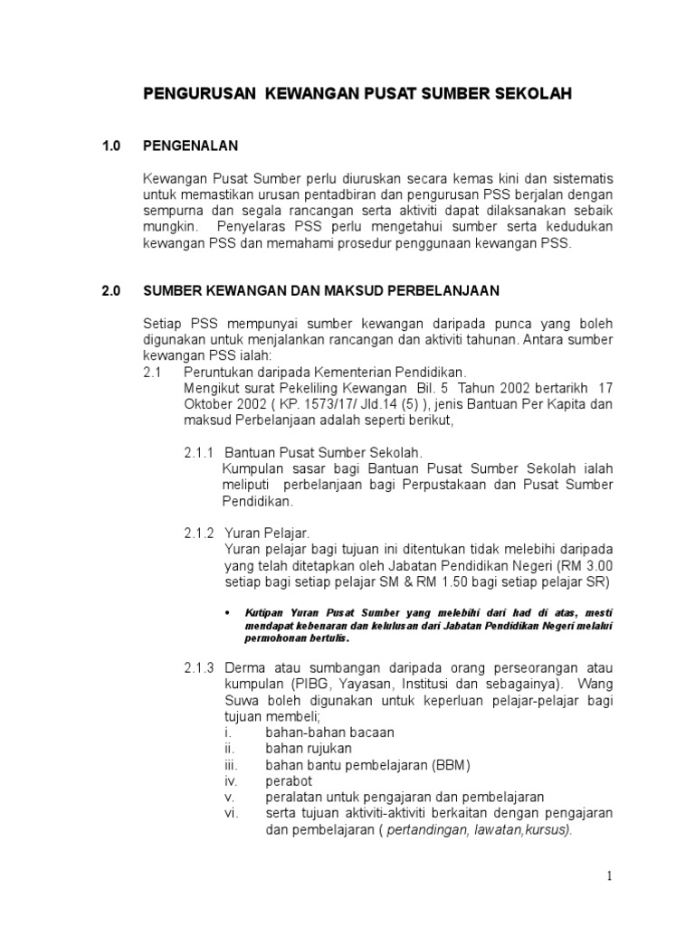 Kewangan Pusat Sumber Sekolah. - Biasanya ada 2 punca kewangan PSS dari kerajaan. Admin January 31 2016.